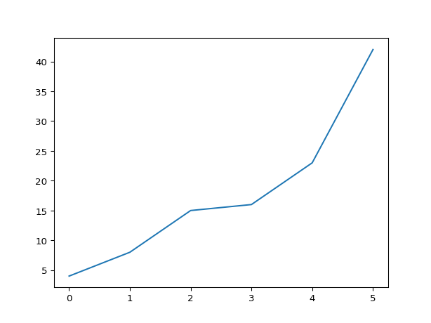 ax.plot([4, 8, 15, 16, 23, 42])